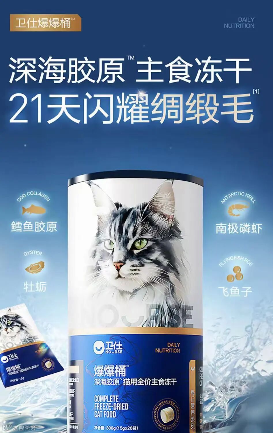 此时,卫仕推出战略大单品——「爆爆桶」深海胶原猫用主食冻干,以“功能主食”切入市场。