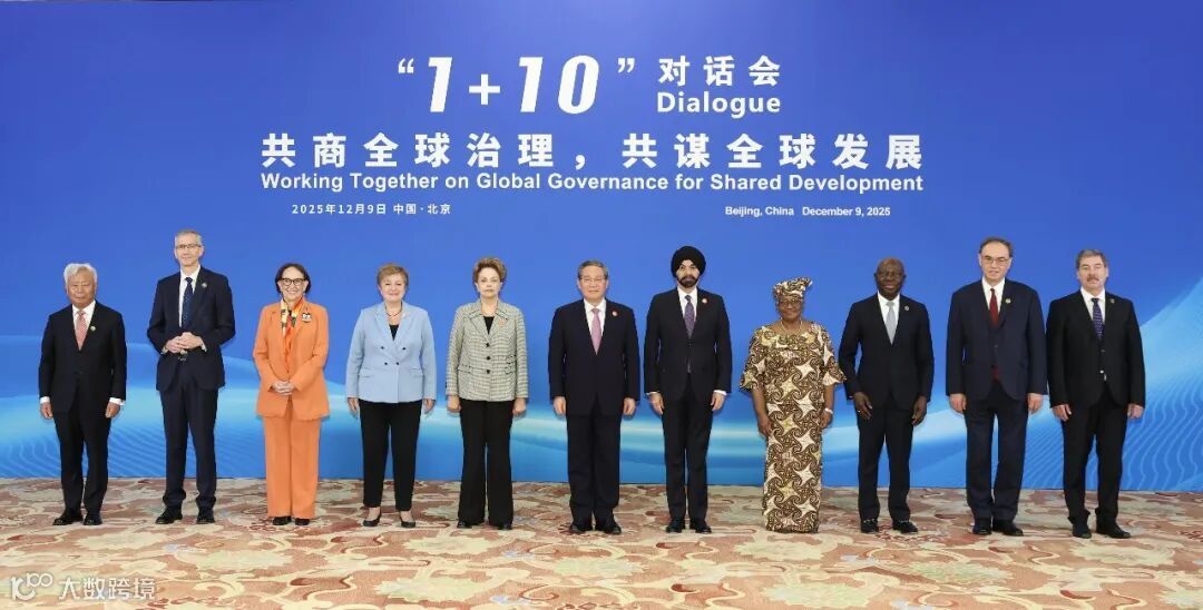 12月9日,国务院总理李强在北京钓鱼台国宾馆同主要国际经济组织负责人举行“1+10”对话会。新开发银行行长罗塞芙、世界银行行长彭安杰、国际货币基金组织总裁格奥尔基耶娃、世贸组织总干事伊维拉、联合国贸发会议秘书长格林斯潘、国际劳工组织总干事洪博、国际清算银行总经理德科斯、金融稳定理事会主席贝利、亚投行行长金立群、经合组织副秘书长鲁日奇卡出席。