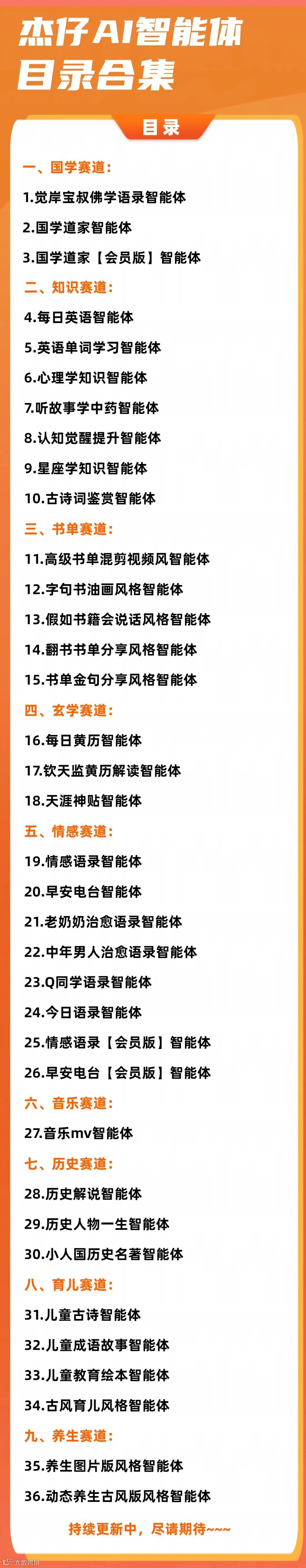杰仔AI视频智能体目录及样片(一):国学赛道和知识赛道的样片