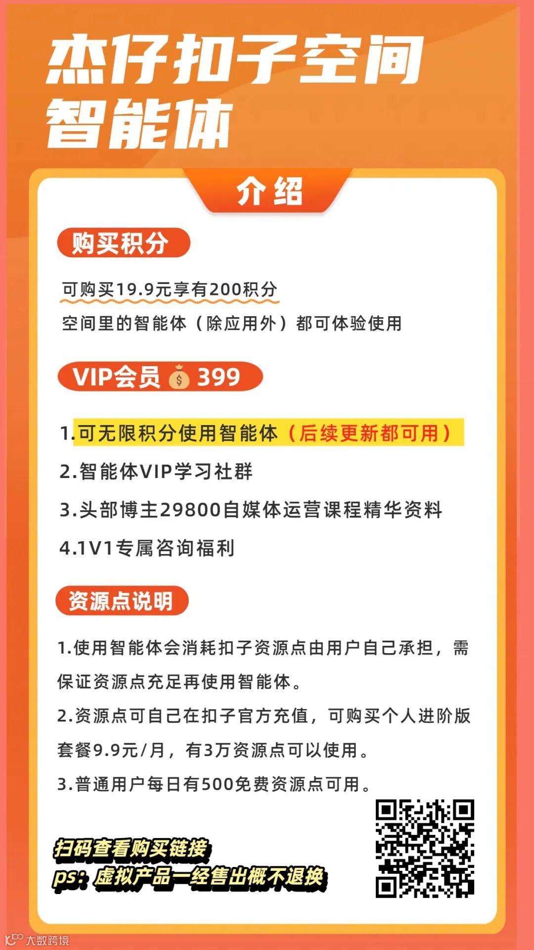 目前我的扣子空间智能体设置了积分以及VIP两种模式,无论是购买了积分或者VIP的朋友都可以使用空间里的智能体(应用除外)后期更新的智能体都可以使用。
