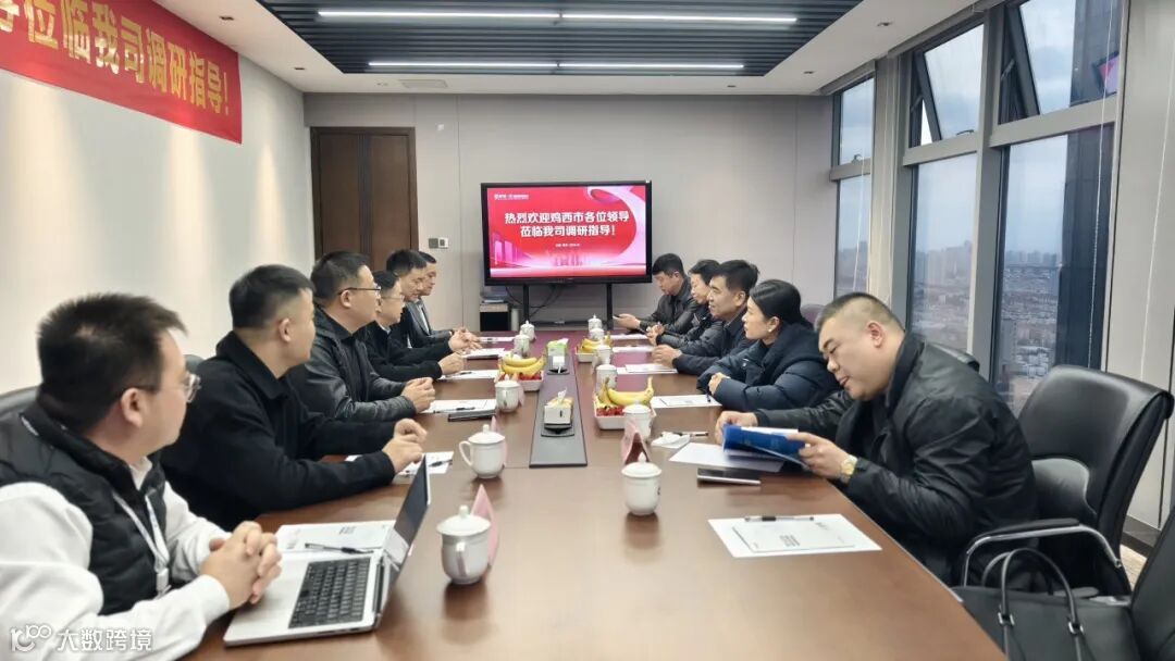 2025年12月2日,鸡冠区委常委、区政府常务副区长陈春雷,鸡西市商务局市场运行和调节科科长盛妍,鸡冠区税务局局长杨丹,鸡冠区商务局局长黄立刚一行莅临青岛掌银信息科技有限公司(以下简称“掌银科技”)调研考察。考察团一行来到位于青岛市市北区中央商务区卓越世纪中心的掌银科技总部,并在会议室与企业相关负责人进行深入座谈交流。