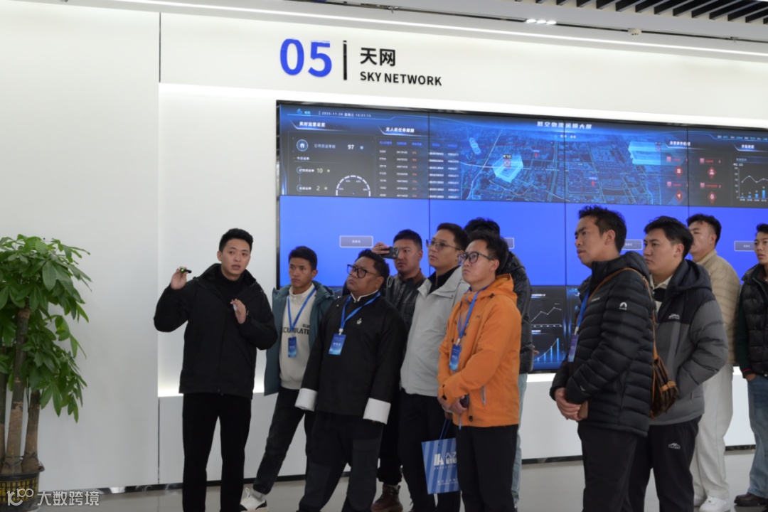 在展厅内,运营经理何晨鹏围绕天网、人网、地网三网协同效应展开详细介绍,通过数据大屏直观呈现天网的空域监控与数据传输能力、人网的运营服务体系、地网的基础设施与场景落地,让考察团对低空经济的全产业链布局与协同运营模式有了清晰认知。