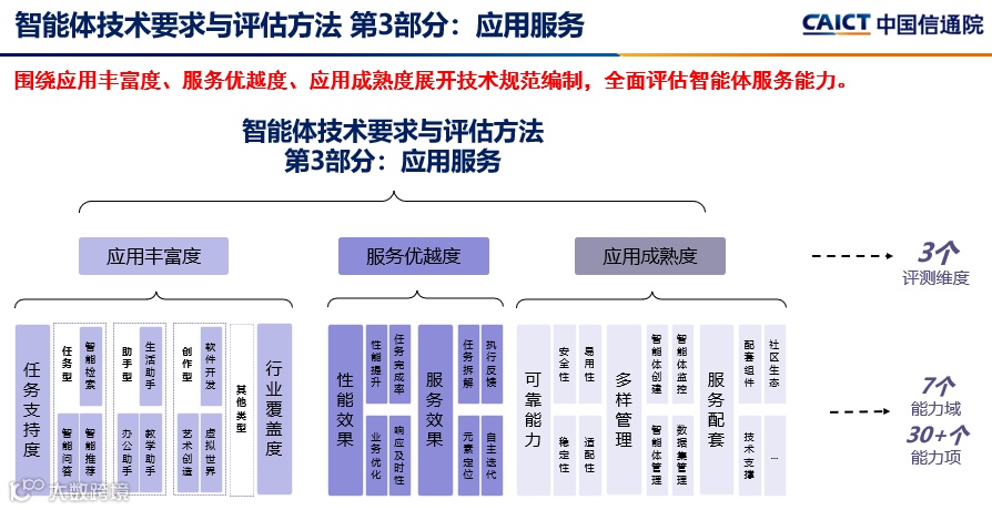 对智能体在应用过程中安全可靠能力、服务配套能力,多样管理能力等方面进行评估。