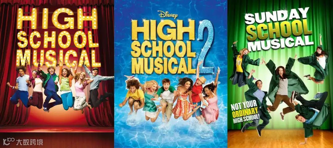 ▲ 左、中为《歌舞青春》系列电影、右为山寨电影《周日高校音乐剧》