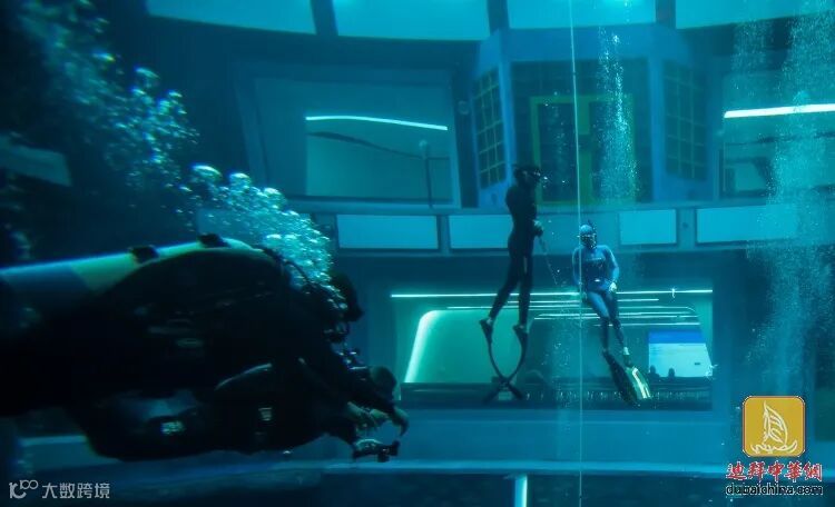 当地时间2022年7月30日,迪拜,这座名为〝深潜迪拜"的游泳池已获吉尼斯世界纪录认证为世界最深潜水用游泳池,水深60米。