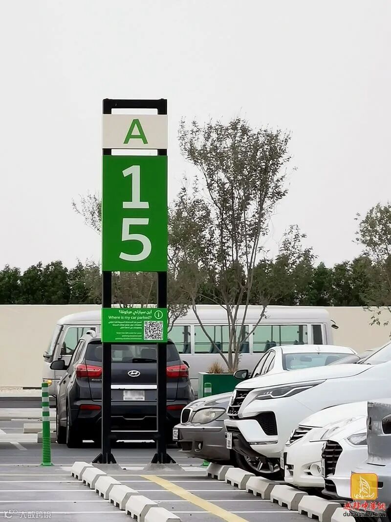 - 蓝色的机动车停车场,可从谢赫·穆罕默德·本·扎耶德路(E311)进入。这里的停车场从A到N不等。