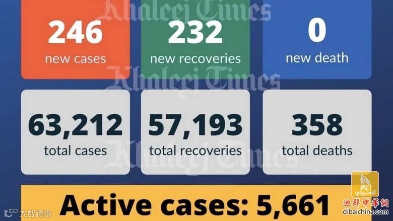 阿联酋卫生和预防部周三宣布,阿联酋新增246例新冠病毒确诊病例,截至目前阿联酋已经累计确诊63212例。