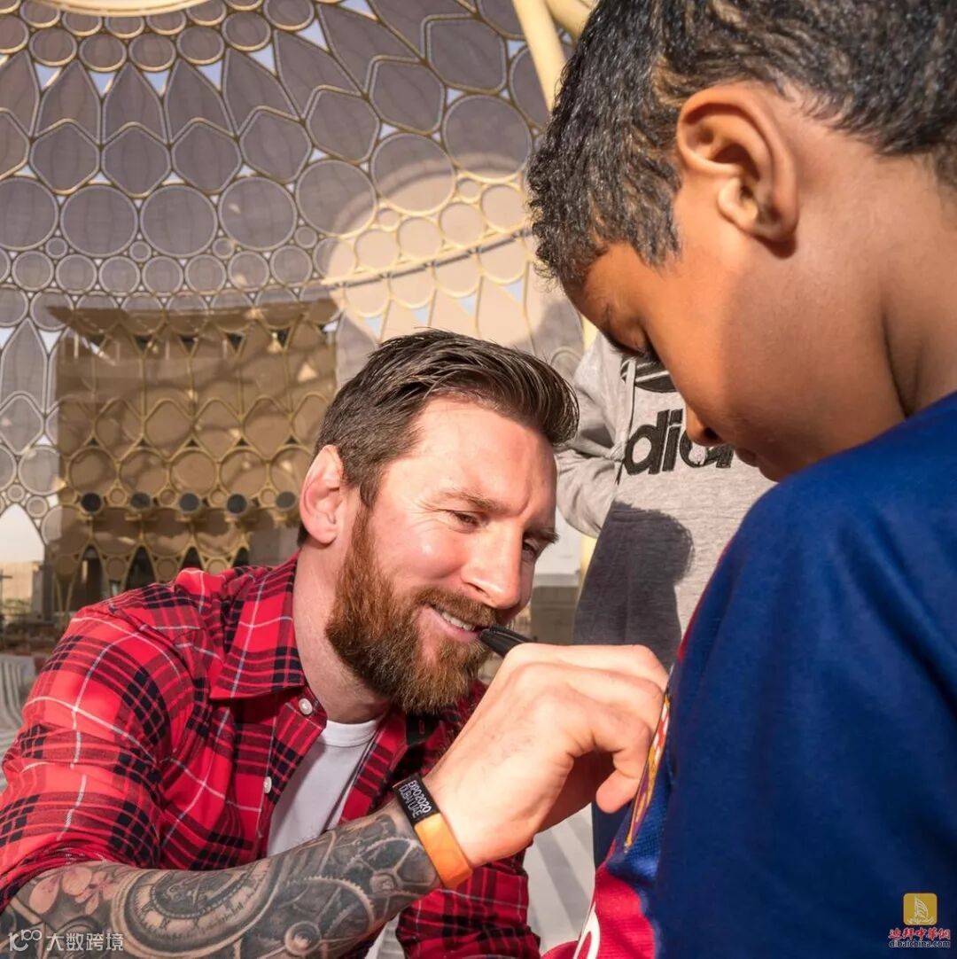 周二,10名阿联酋学生在迪拜2020年世博会的推介活动上遇到了超级足球明星莱昂内尔·梅西(Lionel Messi)。