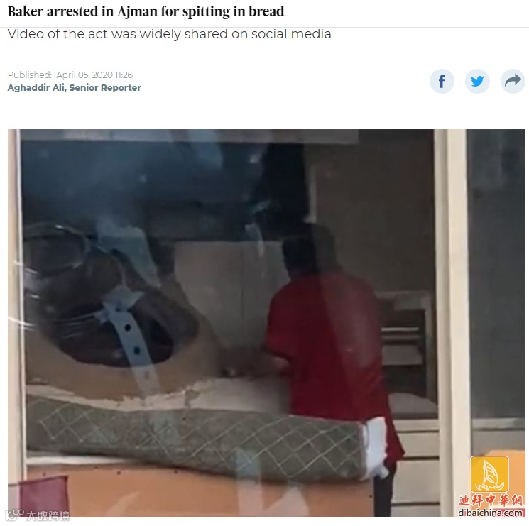 原文翻译的新闻内容是:在周六也就是2020年4月4日,阿基曼警方证实一个面包师在阿基曼的面包房吐痰,目前该嫌疑人已经被逮捕。