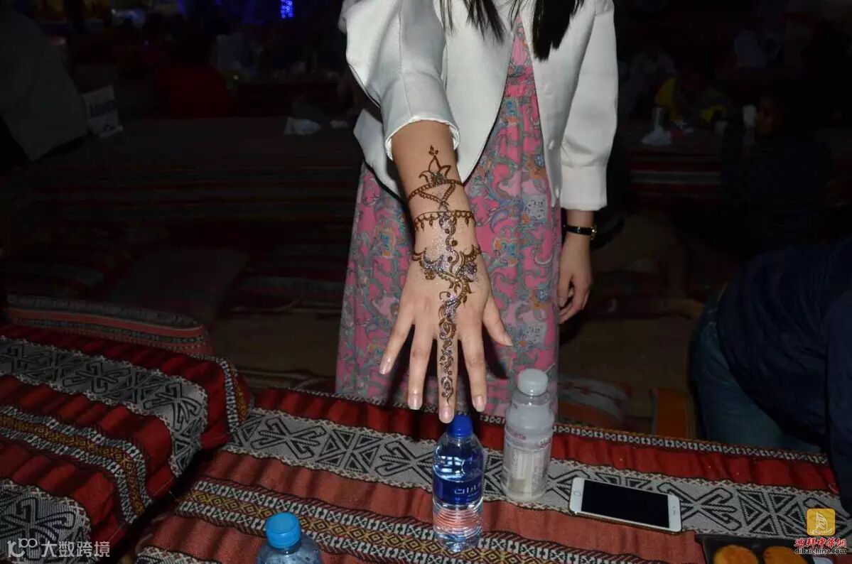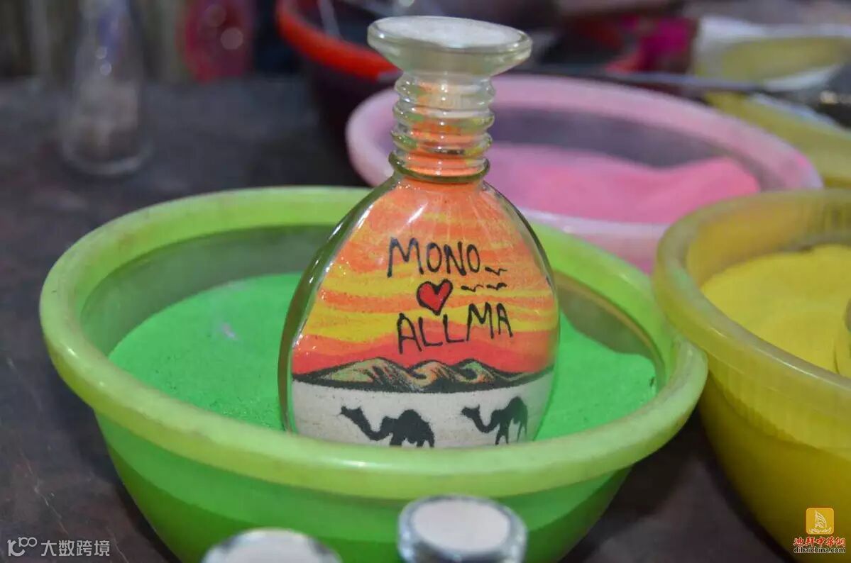 营地里还有一块区域是画沙画是,选取喜欢的颜色,自己要写的字,就可以了,大约20分钟后,带有阿联酋特色景点的沙画瓶就完成啦,作为一个特色的纪念品来旅游的你不要错过。