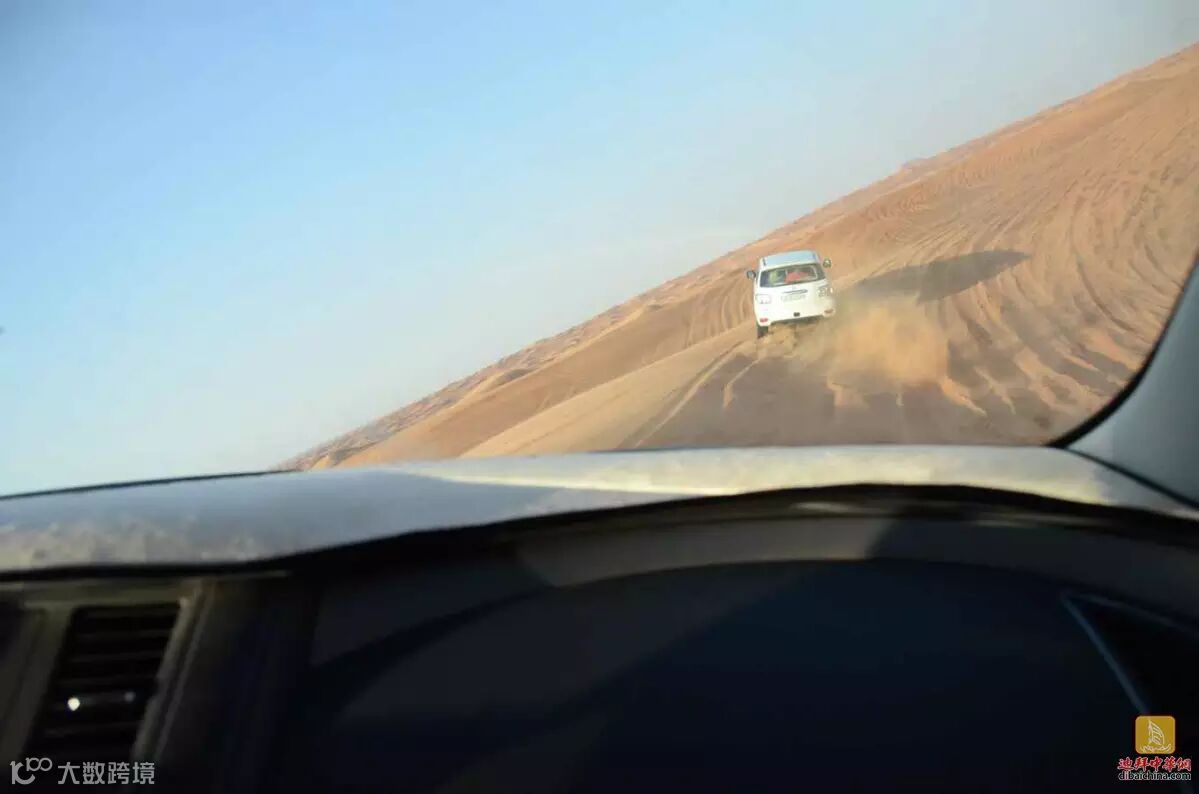 沙漠中有无数沙坑和沙丘,不出意外,司机选了最深的一个坑,把我们深深的“坑了”一把。但这还不是终极,后面还有更刺激的等着我们。车子几乎是垂直冲下沙坑,你可以想象一下,平时坐过山车的感觉,游乐场还有很到位的保护措施,但是在车里,仅仅只有一根安全带和把手,全凭司机的技术掌控,顿时有一种把命交到司机手里的感觉。