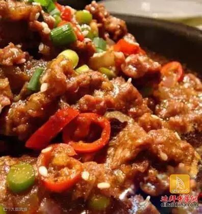 3、下油适量,趁油未热放入牛肉旺火翻炒,烧至六成熟时,把火关小,加盖焖至熟透。这样炒出的牛肉既鲜美又嫩滑。