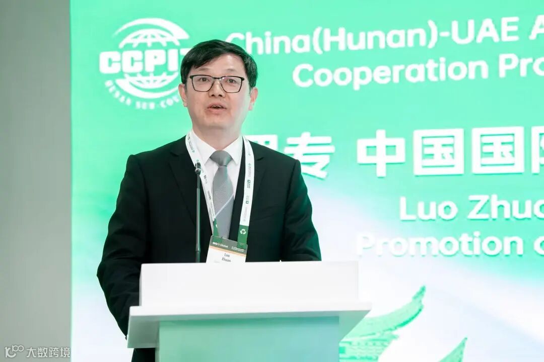 湖南省贸促会副会长罗专在致辞中表示,湖南与阿拉伯国家,特别是与阿联酋的友好交往源远流长,合作基础坚实。他详细介绍了湖南在工程机械、轨道交通、新材料、新能源等优势产业的雄厚实力,并强调湖南省贸促会始终致力于发挥桥梁纽带作用,为两地企业搭建高效、便利的交流平台,推动更多务实合作项目落地生根。他表示愿与阿联酋各界朋友一道,共享发展机遇,共创美好未来。