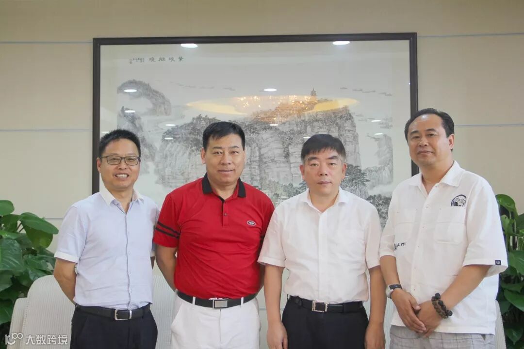 ■中共南通市委统战部副部长、市工商联党组书记、常务副主席(副会长)王虎(右二);阿联酋上海总商会暨同乡会会长成富强(左二);南通市工商联副调研员、办公室主任顾和华(左一);通商全媒体《通商》杂志董事长、南通企业文化研究会会长李建军(右一)