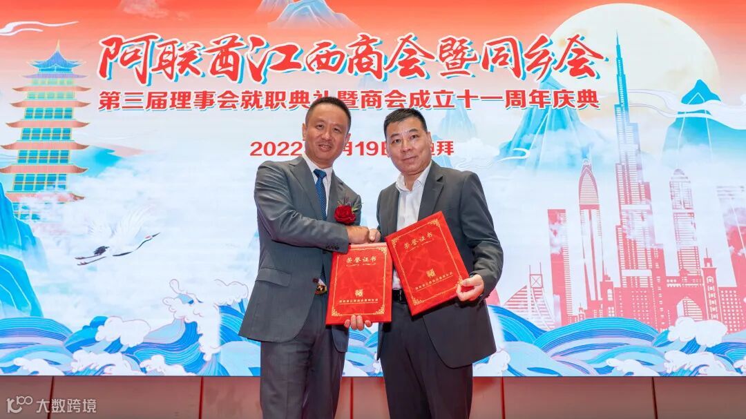 典礼上,在与会嘉宾的见证下,胡栋晟与阿联酋上海总商会暨同乡会会长成富强互换了共建友好商会证书。