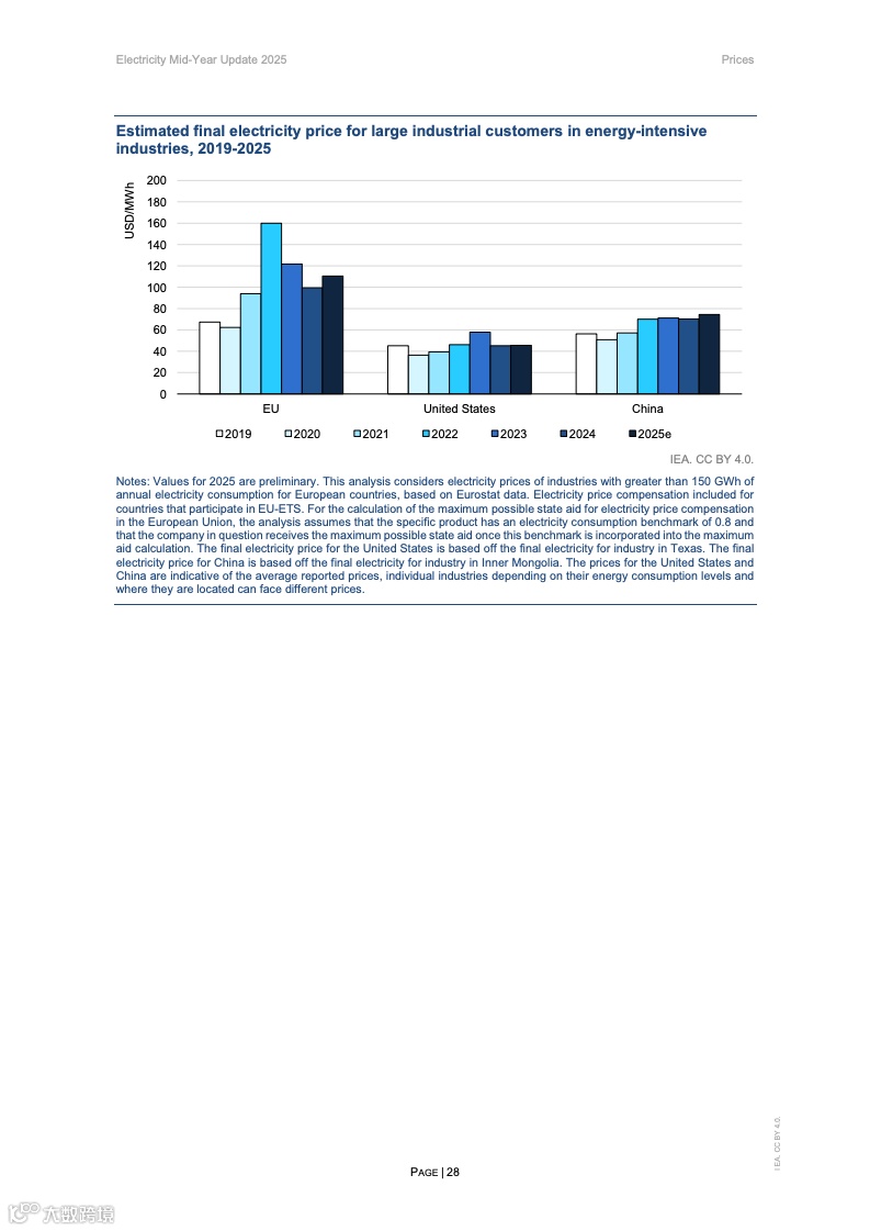 2025年上半年,欧盟和美国的批发电价较去年同期上涨了30-40%,这主要是由于全球天然气市场紧张导致天然气价格上涨。