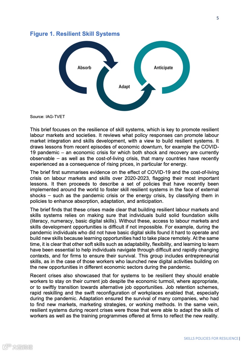 趋势洞察显示,未来技能系统需强化吸收、适应和预期能力。数字化和绿色转型将主导,46%欧盟成人缺乏基本数字技能,绿色职业需求科学、数字和软技能。终身学习和微凭证将成关键,推动包容性恢复,避免新数字鸿沟,确保脆弱群体韧性。