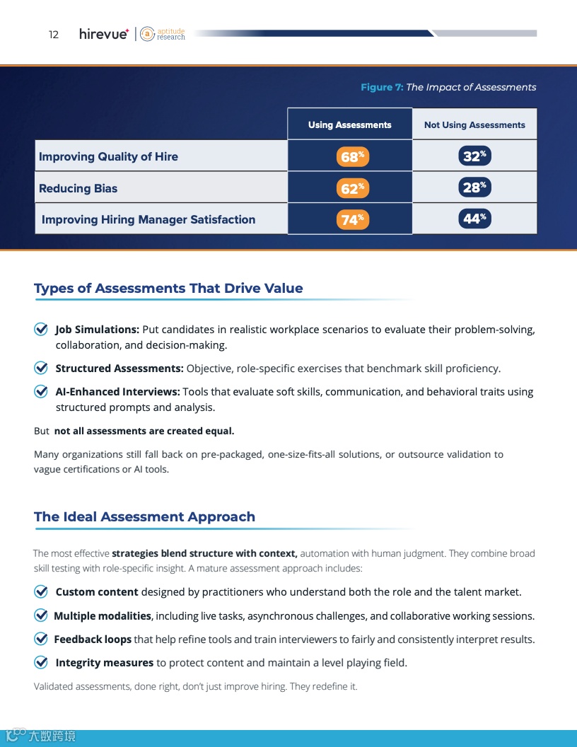 人工智能在技能验证中发挥重要角色,但大多数企业仍处于逐步采用阶段,仅15%将AI作为核心技术战略。AI通过视频评估、情景模拟和结构化访谈等形式,实现技能的客观测量和评估,提升招聘的科学性和准确度。有效的技能评估不仅评测知识,更测量实际应用能力,是提高用人匹配度和绩效预测的关键。