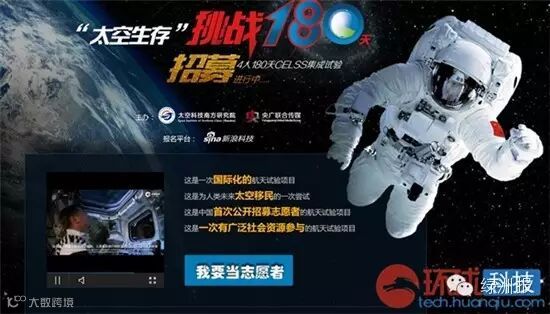 据新浪科技8月3日消息,2015年8月3日,由太空科技南方研究院发起的《绿航星际•“太空生存“挑战180天》项目志愿者招募选拔活动正式上线。