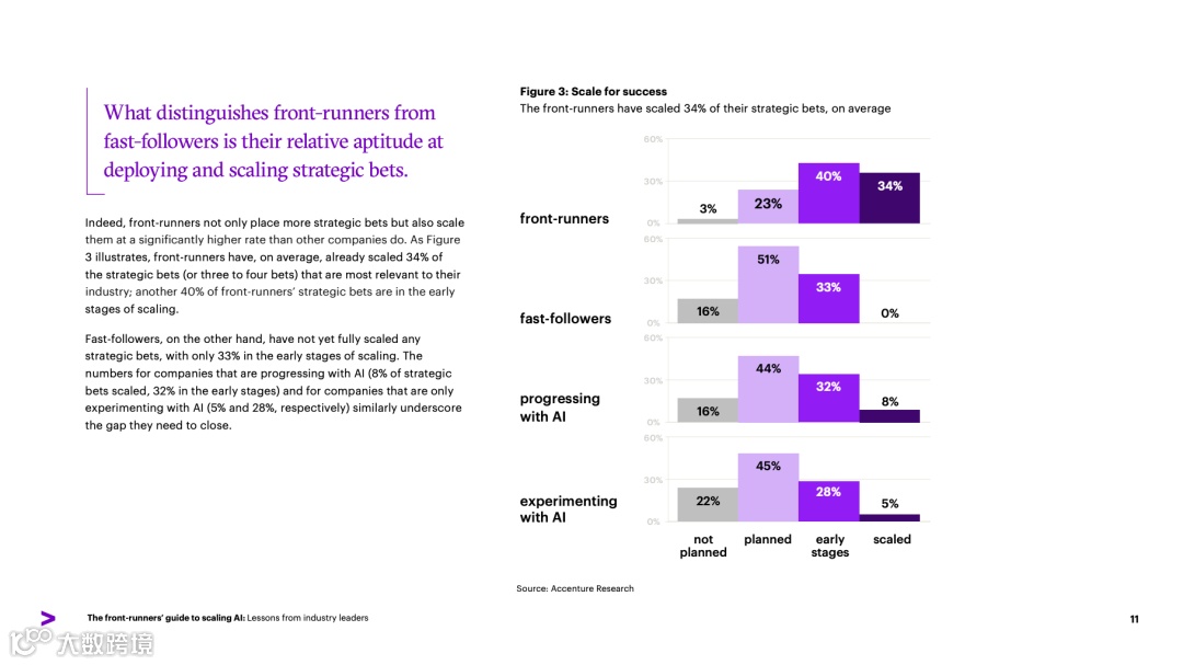 趋势洞察表明,AI成熟度正成为企业核心竞争力的关键分水岭,市场呈现出明显的马太效应。竞争焦点已从是否应用AI转向如何系统性地规模化AI。领先企业通过将AI深度整合至核心战略、构建高质量数据基础以及重塑人才模式,形成了难以逾越的复合优势。未来,企业间的差距将主要体现在战略整合深度与数据价值转化效率上,而非单纯的技术部署。