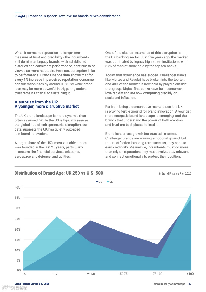 德国品牌在2025年欧洲最具价值品牌前十名中占据主导地位,拿下七个席位。法国品牌占据两席,英国品牌占据一席。