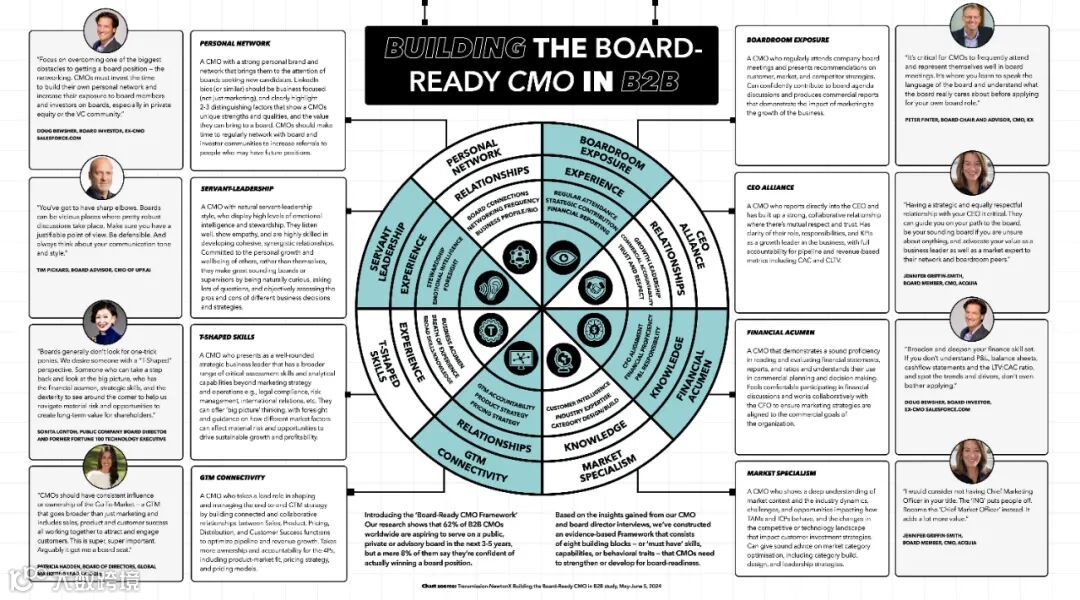 研究还显示,网络是确保董事会职位的重要组成部分,但往往被首席营销官忽视。令人惊讶的是,75%的首席营销官每月与高管和董事会成员建立联系的时间不到20小时,一半的首席营销官承认,他们在董事会的形象和人脉并不强大。