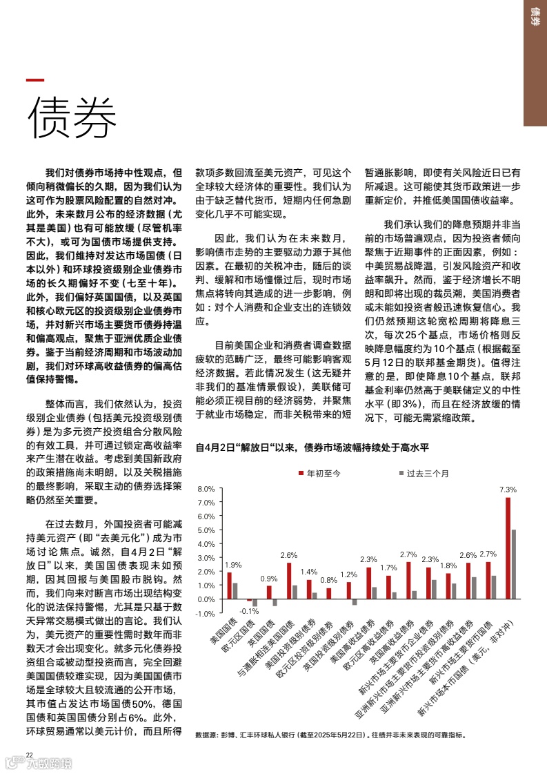 美国关税政策突袭引发4月市场暴跌,90天暂免期后又现转机。政策摇摆令投资者如履薄冰,但衰退风险暂缓——关税推高通胀却未扼杀增长,美联储年内或降息三次,亚洲多国同步宽松。核心策略:拥抱波动,布局韧性。