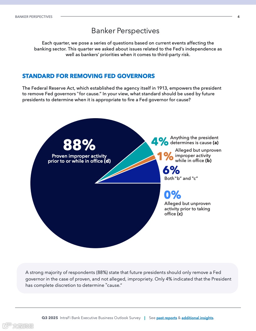 95%受访者认为维持美联储货币政策独立性重要,75%称非常重要;监管独立性上,56%非常重要、35%较重要。