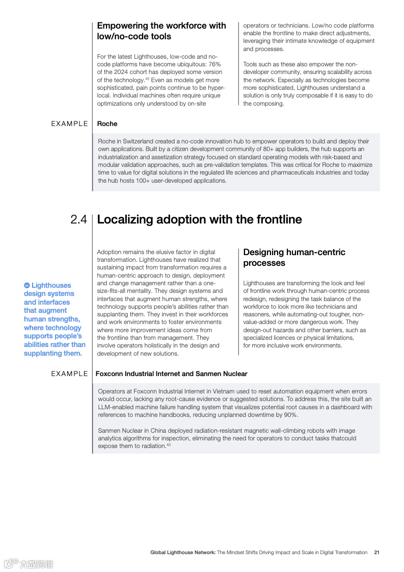 新晋灯塔工厂的平均数据显示,劳动生产率提升了40%,交付周期缩短了48%。人工智能与生成式人工智能的应用已成为核心驱动力,在超过50%的落地用例中扮演关键角色。这直接转化为显著的运营效益,包括产品缺陷率降低41%,能源消耗减少28%,以及生产周期缩短44%,清晰地展示了技术投资的直接回报。