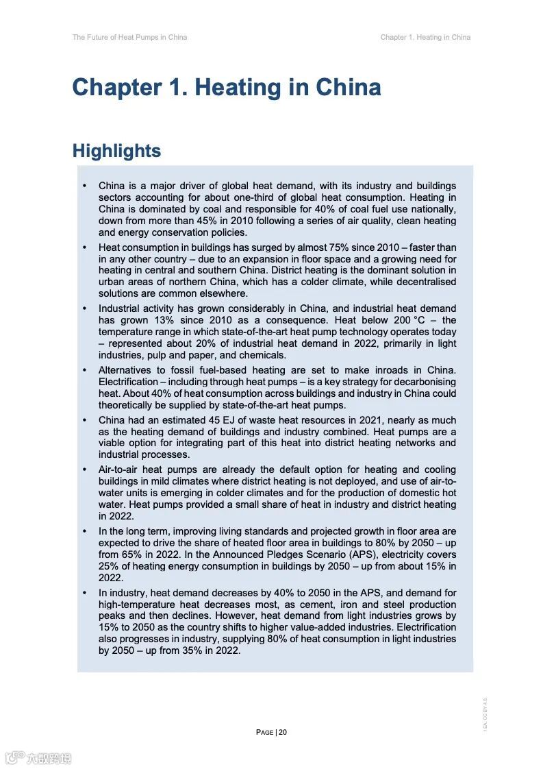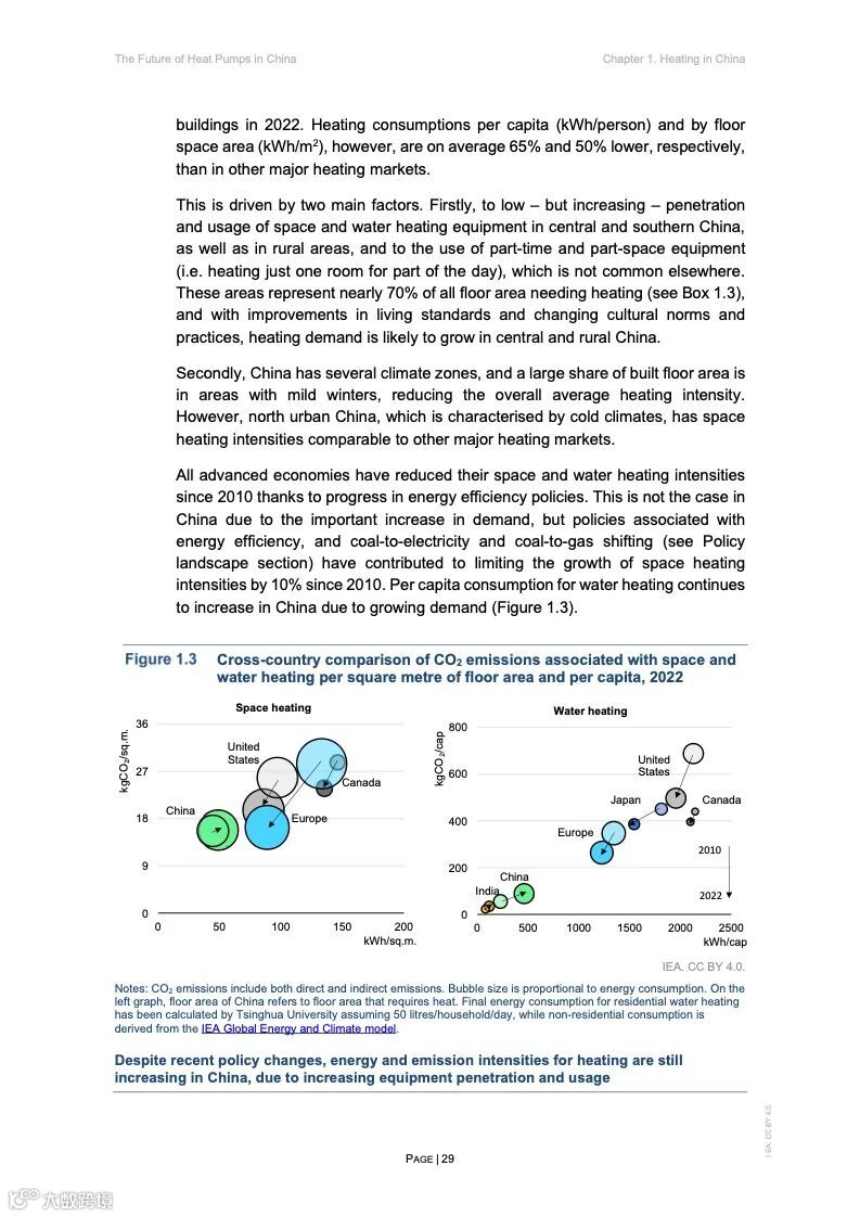 在建筑部门,分布式热泵的最大应用潜力在于中国农村以及南方和中部城市,其在中国北方城市的新建建筑中的应用也预计将会增加。