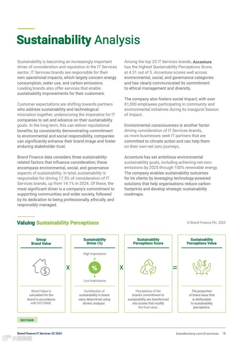 埃森哲连续第七年被评为全球最具价值IT服务品牌,并获得最强大IT服务品牌的称号。