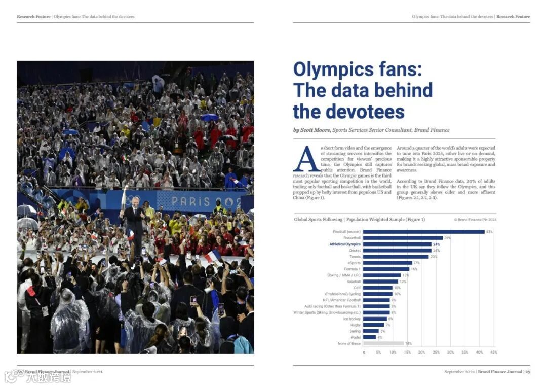 根据Brand Finance的数据,奥运会与其他主要运动品牌处于同一水平,其价值高于英超(99亿美元)和NBA(89亿美元)。