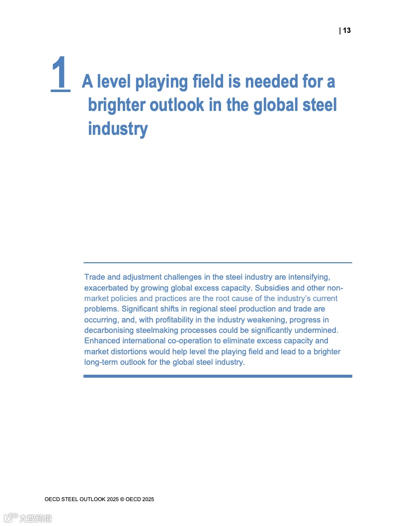 为避免长期形势恶化,需加强解决全球产能与需求结构性失衡根源及后果的努力。受影响国家可通过共享数据、知识与经验合作减轻全球钢铁过剩对经济的破坏性影响。