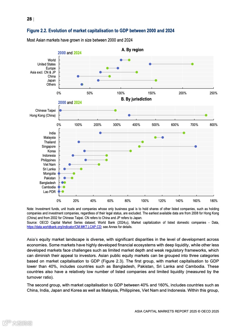 资本市场能够通过从广泛多元的投资者群体中调动大规模资金来为创新提供融资,因此特别适合支持雄心勃勃的创新驱动型企业。它们还提供了开发新兴技术所需的风险资本。市场融资水平较高的亚洲经济体在创新方面更为成功。