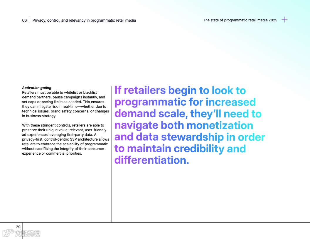 零售商可通过专为零售媒体构建的SSP与DSP整合,从而触达新需求。这实现了站内和店内库存的无缝购买,同时保持对数据、创意和竞价动态的控制。若实施得当,此举将增强而非削弱规模效应和差异化优势。