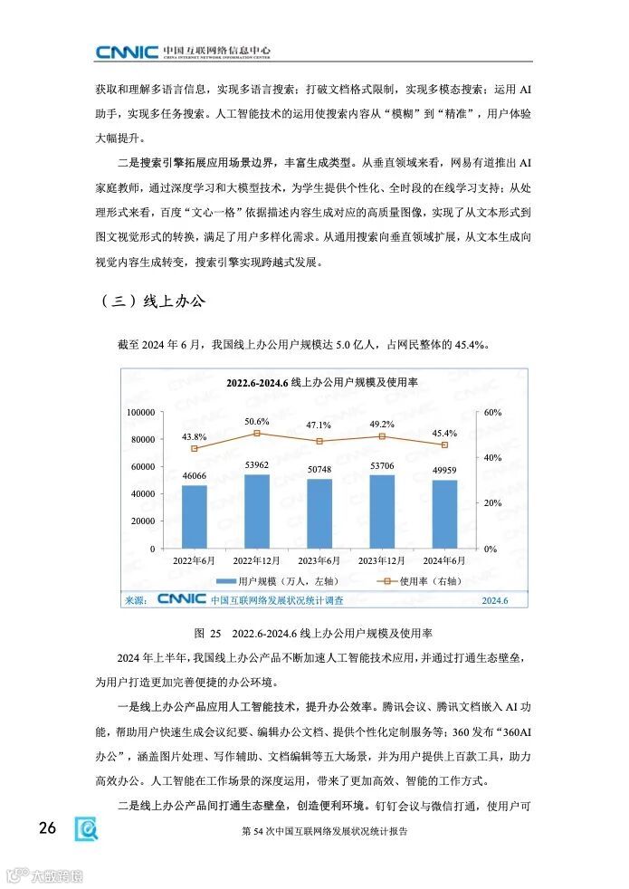 《报告》显示,上半年随着用户对优质内容需求的不断增长和行业环境的不断优化,网络视频行业呈现蓬勃发展势头。一是微短剧行业合规化水平不断提升。随着行业引导政策陆续出台,微短剧创作生产走向规范化。《报告》显示,截至6月,微短剧用户占网民整体的52.4%。二是短视频行业持续繁荣。随着短视频平台用户黏性不断提升,短视频电商业务稳步发展,商业化变现效率持续提高。截至6月,短视频用户占网民整体的95.5%。三是长视频行业提质增效。行业提质趋势延续,其中《我的阿勒泰》《繁花》等长视频类剧集兼具热度与口碑,为用户带来了高质量的视听体验。截至6月,长视频用户占网民整体的65.2%。
