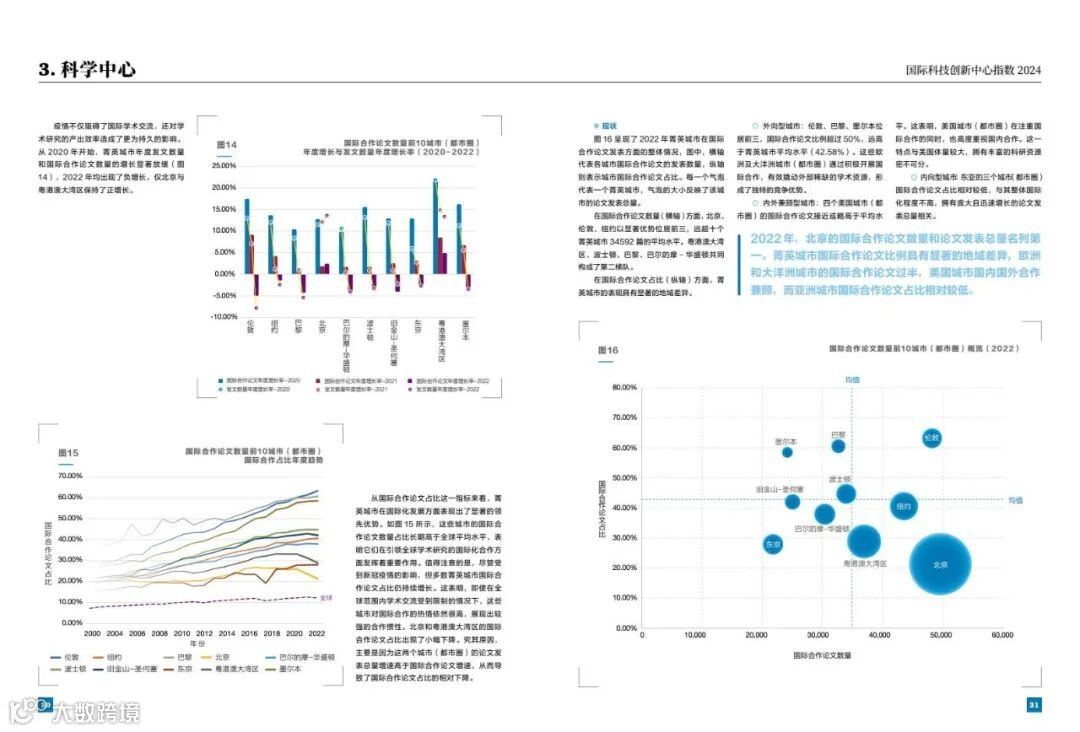 三、科学中心方面,美国城市凭借深厚的基础持续占据优势地位,中国城市的快速崛起尤为突出。