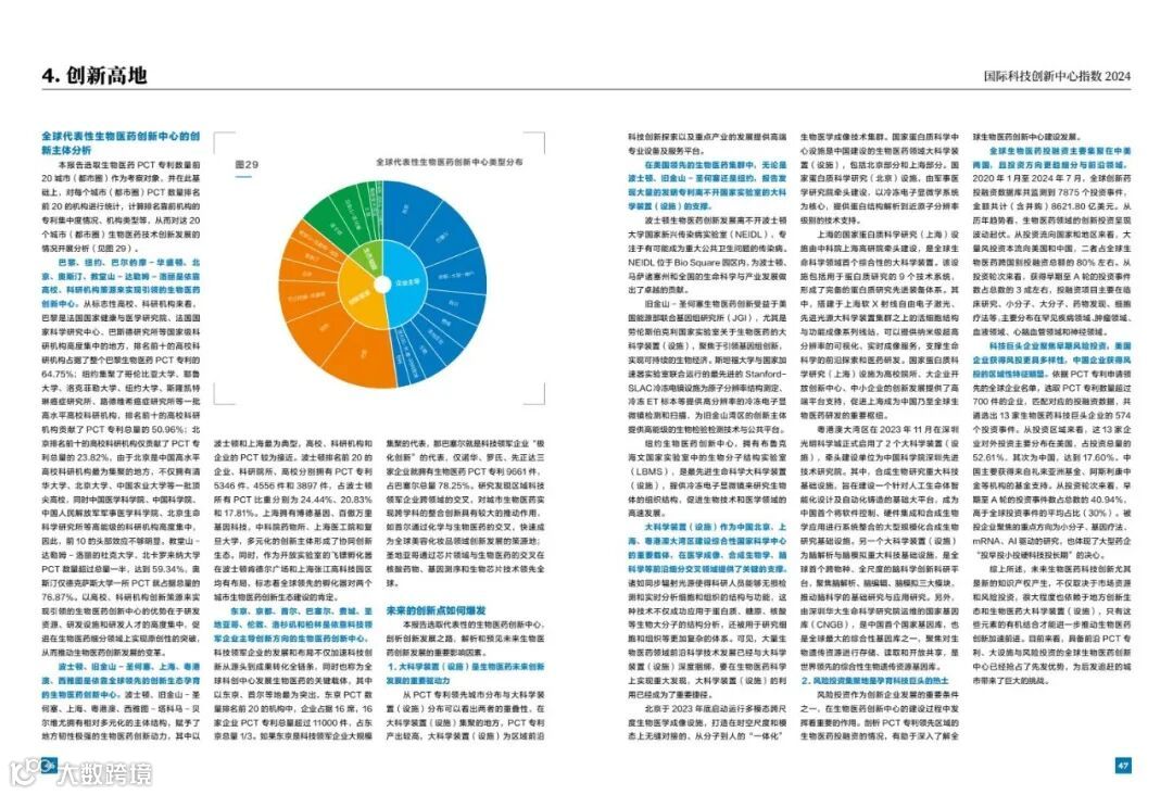 欧美城市在全球创新版图中依旧保持着整体领先的地位,14个欧美城市(都市圈)占据综合排名前20。(2)湾区科技创新集成优势显著,创新高地前五的城市(都市圈)中有4个位于湾区。这些城市在创新企业和新兴产业方面表现出突出优势。(3)在人口不足百万的微型科技创新中心中,剑桥、巴塞尔和牛津位列前三甲。这些城市通过发挥特定领域的显著优势来推动创新活动,例如伊萨卡的顶尖高校和科研人才资源、埃因霍温的技术创新能力、奥斯陆蓬勃发展的创新生态系统。