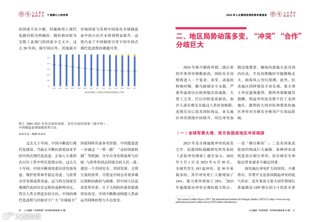 2024 年,全球发展道路处在“进则分叉、退亦可能”的“Y”型路口:一些国家已走上新型发展道路,一些国家正在酝酿着转变,一些国家仍原地不动,甚至还有一些国家走上回头路。