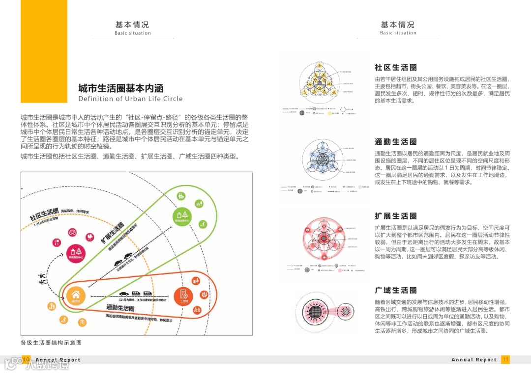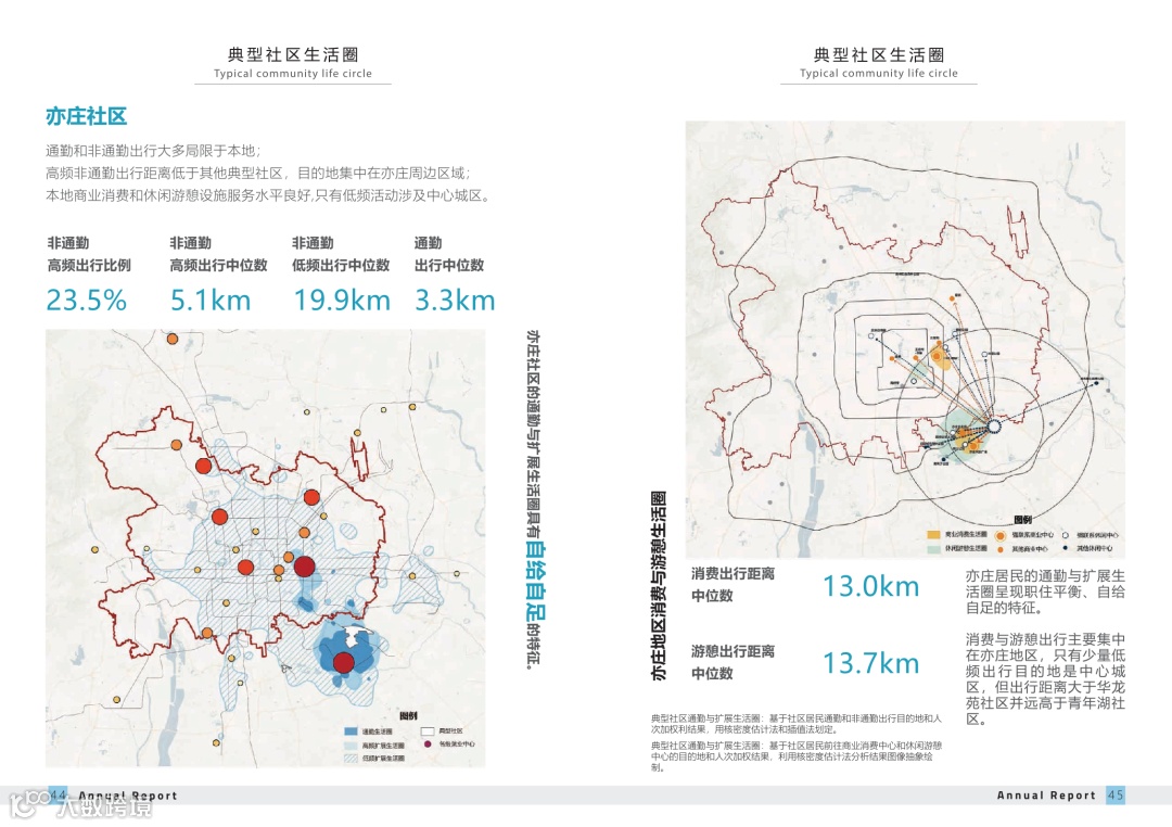 全市共识别休闲游憩生活圈3个圈层:强客流游憩扩展生活圈、中等客流游憩扩展 生活圈、弱客流游憩扩展生活圈。强客流呈现出内城为核,向内集聚的趋势,服务 半径约9km;中等客流一方面指向内城,另一方面指向远郊的休闲游憩中心,空间 分布相对均衡,服务半径约10km;弱客流主要面向远郊的游憩中心, 呈现中心环 带分布,远郊多中心的结构,服务半径约42km。