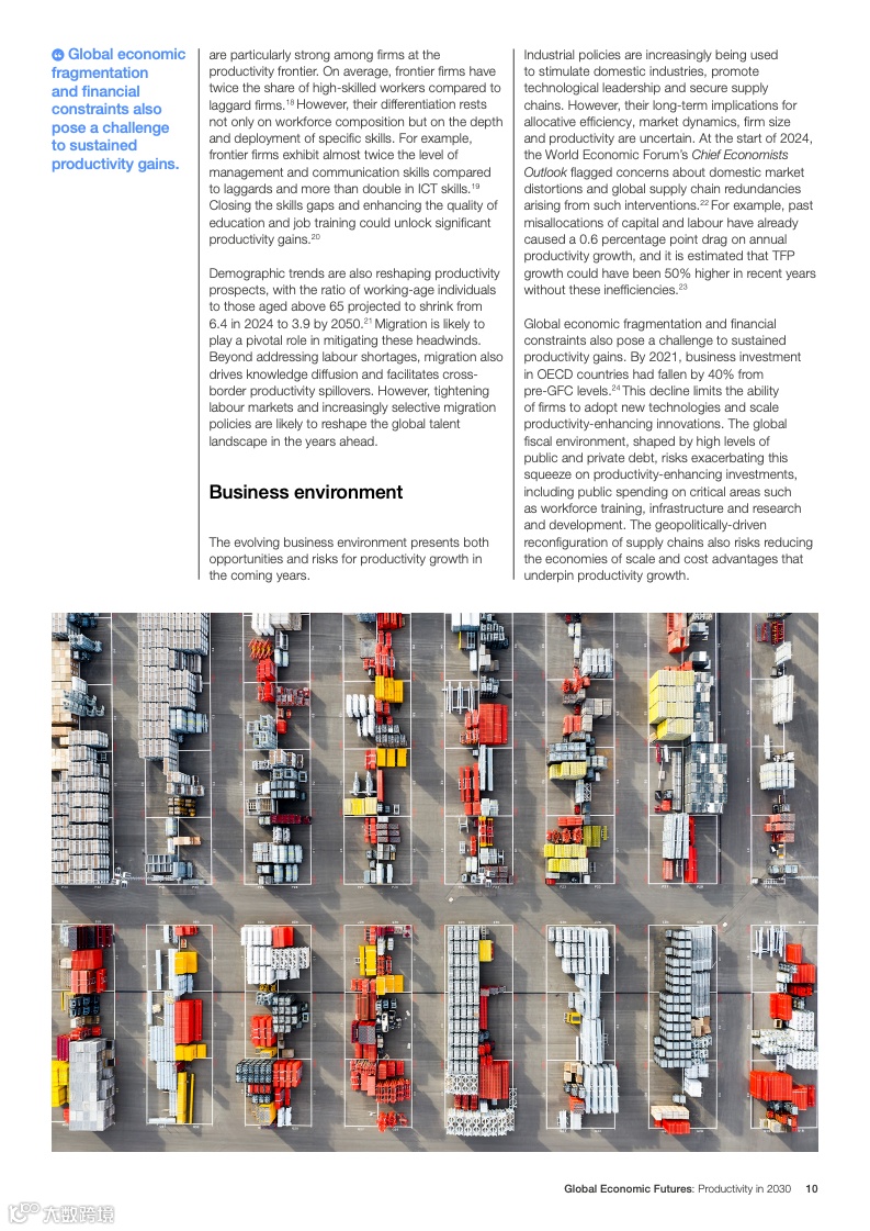 对于未来几年的生产率增长速度,人们几乎没有达成共识,但许多趋势将影响它,包括技术、技能、劳动力、市场、人口、金融、监管、基础设施和地缘经济。
