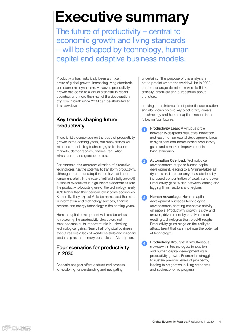 对经济增长和生活水平至关重要的生产力的未来,将由技术、人力资本和适应性商业模式塑造。