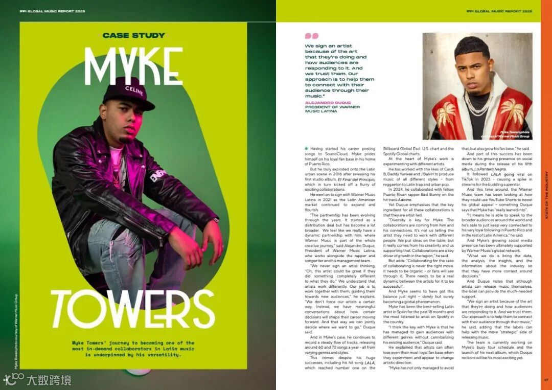 2024年拉丁美洲录制音乐收入增长率:22.5%。