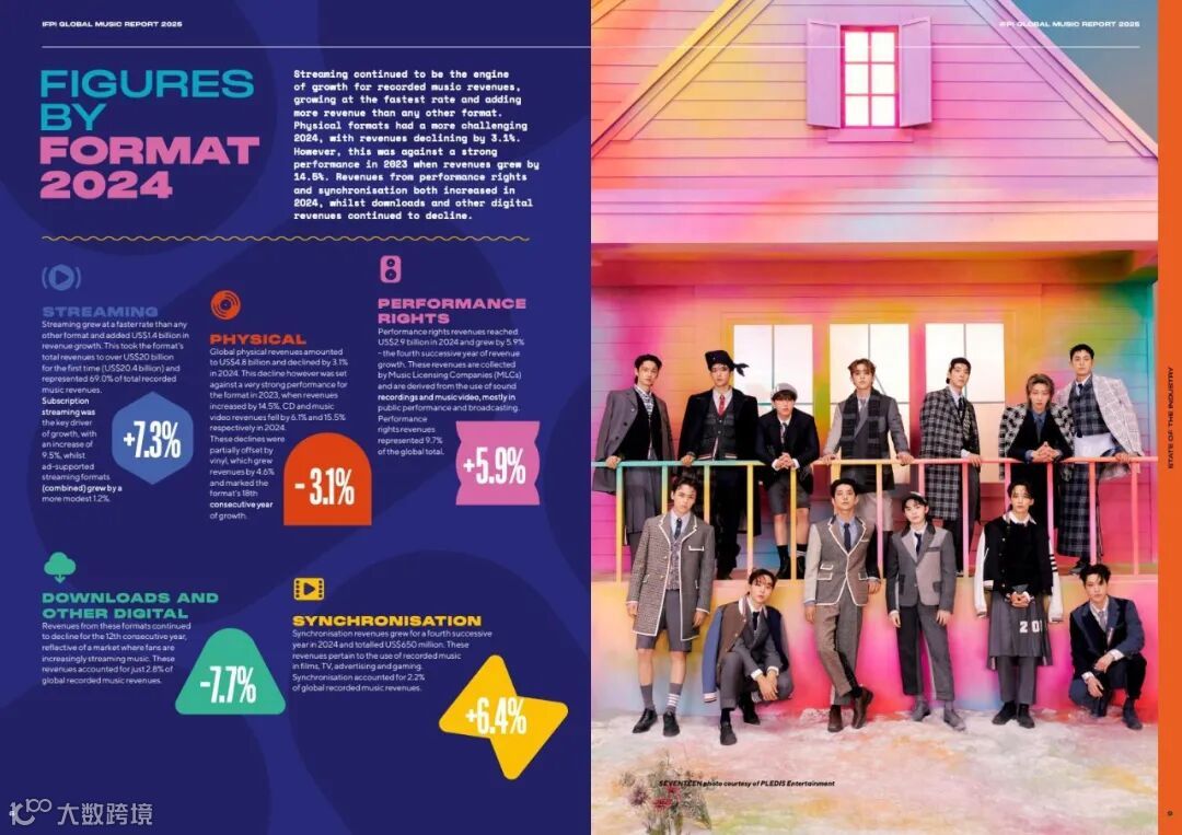 2024年全球表演权收入:29亿美元,同比增长5.9%,占全球录制音乐总收入的9.7%。
