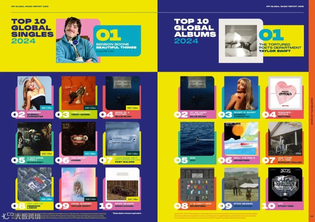 2024年全球录制音乐产业总收入:296亿美元,同比增长4.8%。