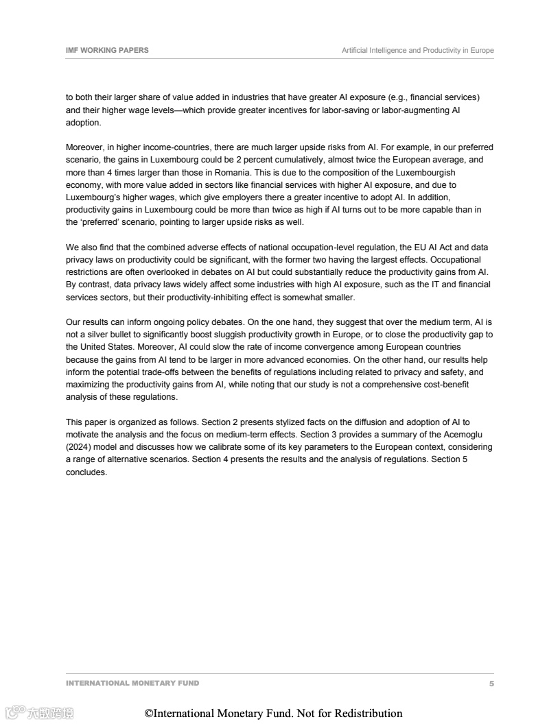国际货币基金组织(IMF)的最新研究量化了人工智能(AI)对欧洲生产力的潜在影响,其核心结论指向温和增长与显著分化。