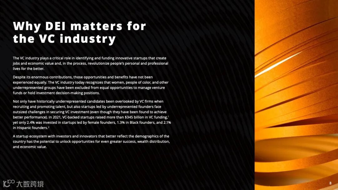 2022年,非洲裔女性员工占投资专业人士的2%,占投资合伙人的1%。西班牙裔女性员工占投资专业人士的2%,占投资合伙人的2%。与2020年相比,2022年担任高级决策职责的投资专业人士中的女性比例几乎没有增加。