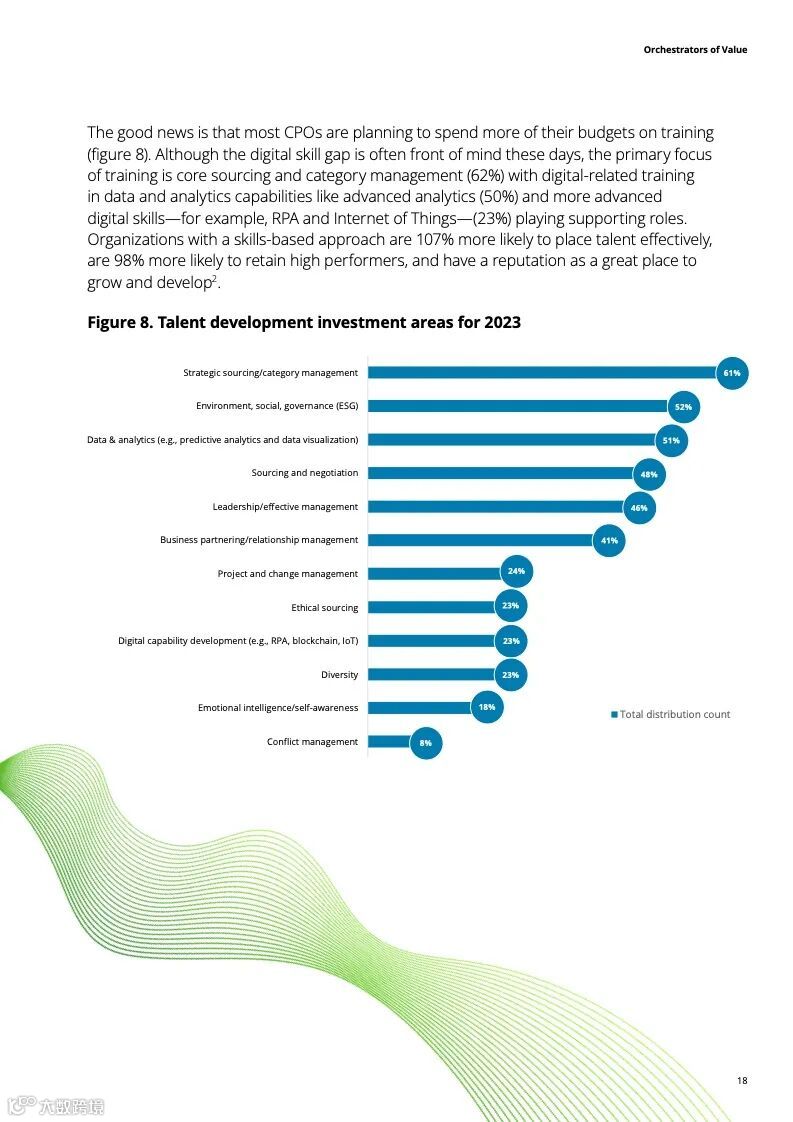 调研结果表明,在市场逆境之下,卓越的首席采购官纷纷通过建立更敏捷的采购运营模式、实施更灵活的人才管理策略以及推动更有效的数字化转型来提升未来业务的韧性,引领价值创新、助力企业对抗危机。