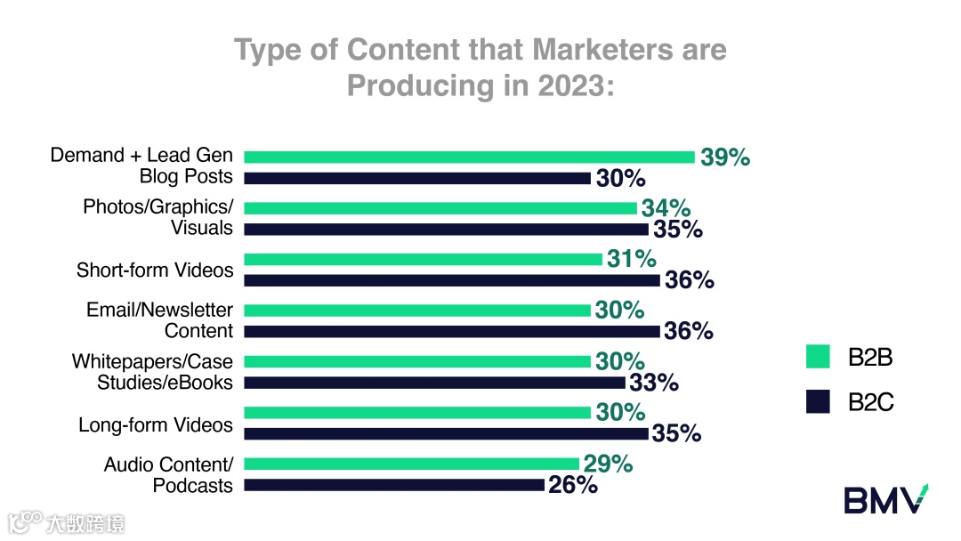 BMV调查了1000名美国营销人员,他们认为自己正在从事内容营销活动。其中包括: