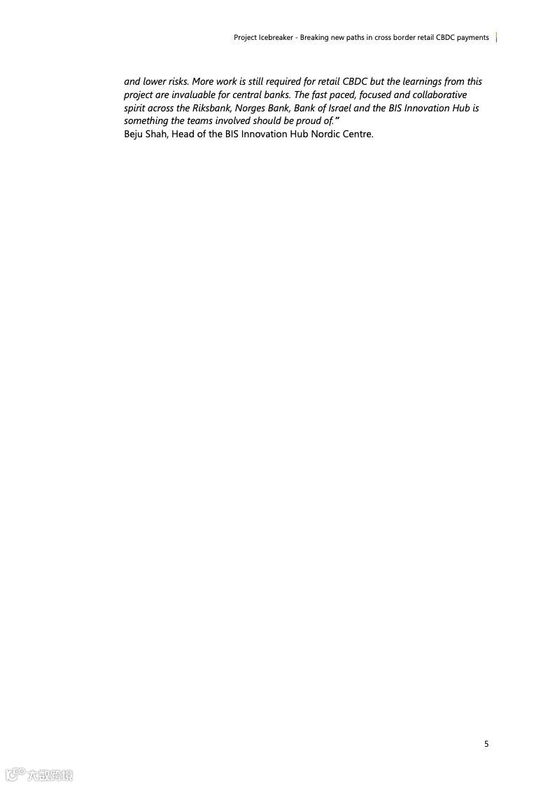 互操作性和可扩展性。 Icebreaker 模型采用的中心辐射式方法将 rCBDC 系统之间的连接数量保持在最低限度。其中心仅发送支付消息,并不对其采取行动。它所依据的唯一信息是来自外汇提供商的数据,这些数据用于为付款人识别和选择最佳外汇汇率。